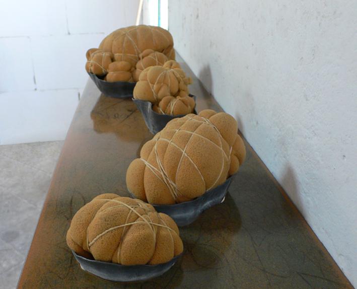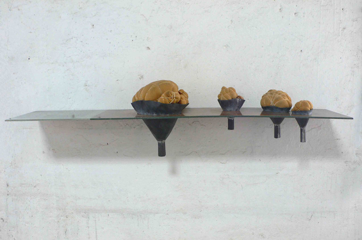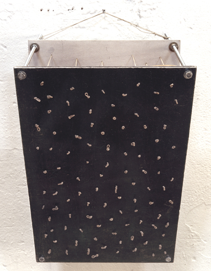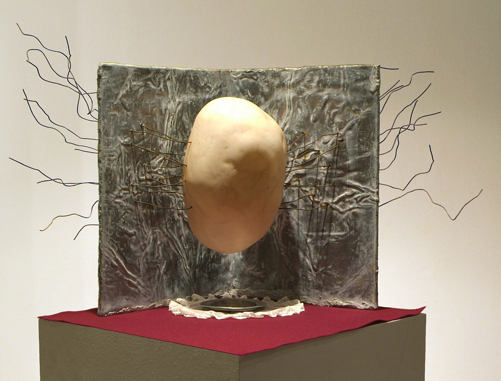 offerings _ lead, wire, russian porcelain, aluminum plate and tulle _ 45 x 45 x 52