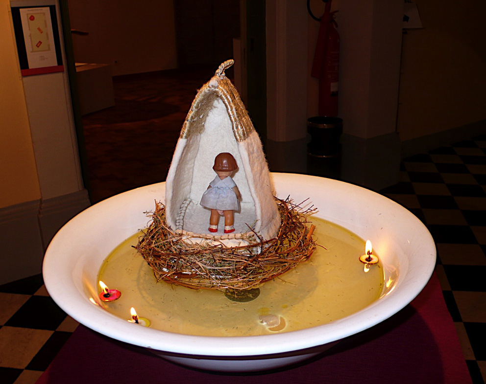 ritual _ felt, silk thread, tree branches, lanterns, water and oil _ 38 x 27 cm.