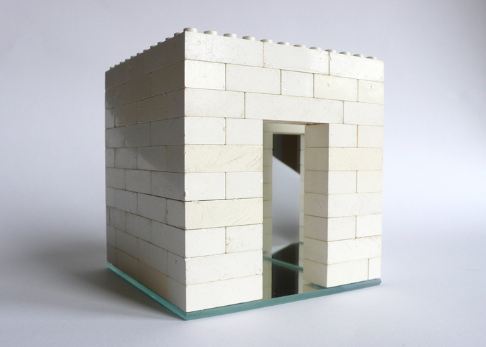 chipped fable _ mirror, wax, lead, elastic bands and methacrylate box _ 40 x 45 cm.